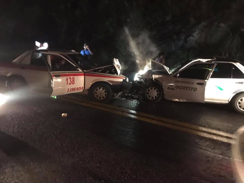 Además resultaron heridas 6 personas que viajaban como pasajeros en ambas unidades, y aparte al conductor del taxi de El Ocotito.