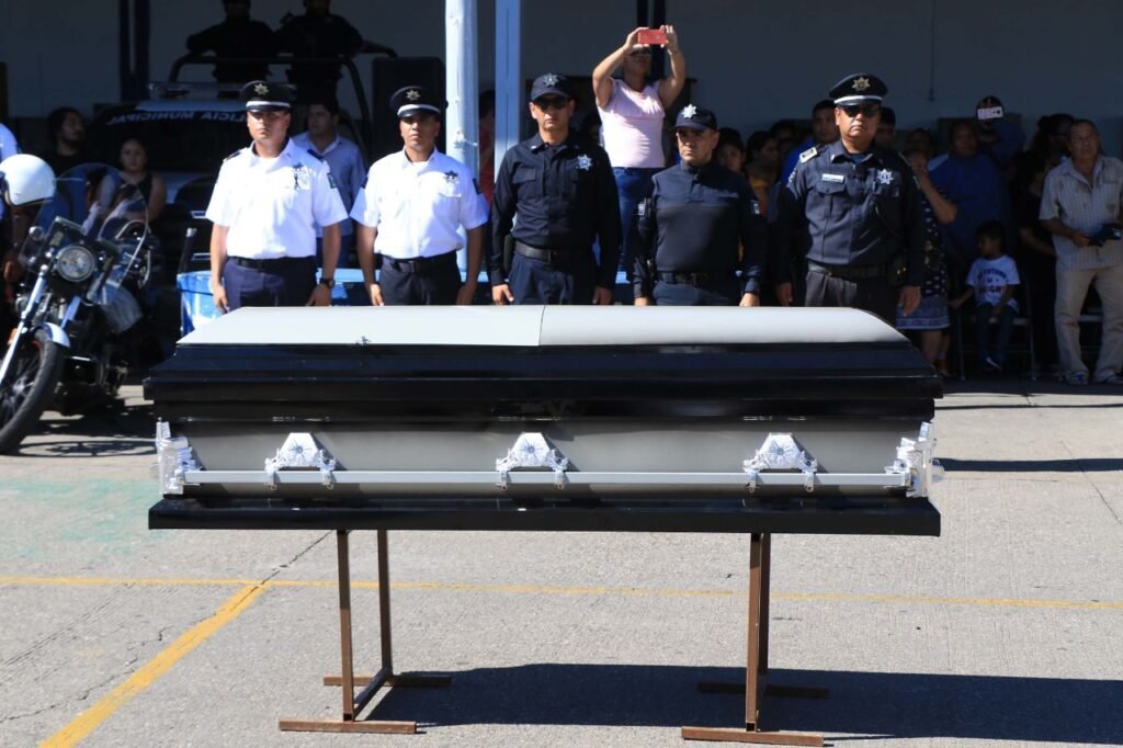 Uno de los occisos en ese hecho fue el oficial Oscar Marroquín Hernández, quien fue despedido este sábado en las instalaciones de la SSP.