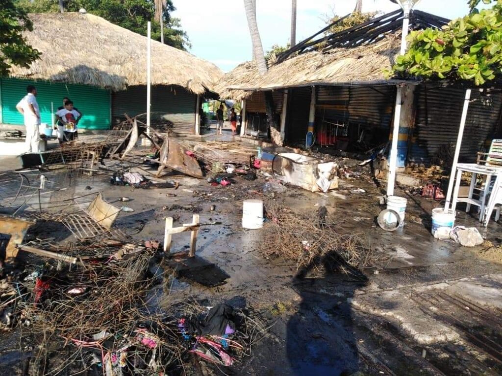 Fueron 19 los puestos de artesanías que ardieron en llamas esta mañana de lunes, sobre costera Miguel alemán, en el fraccionamiento Magallanes, a unos metros del hotel “Krystal Bech” y frente al “Parque Papagayo”.