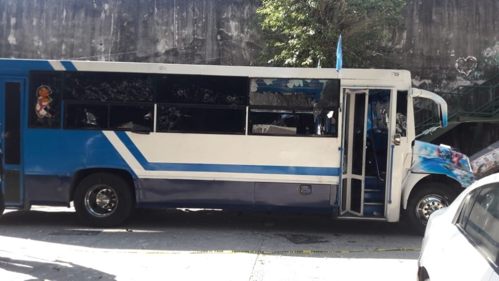 La unidad móvil se encuentra con parte de las ventanillas quebradas y en el parabrisas con la leyenda “Lilo y Stich”.