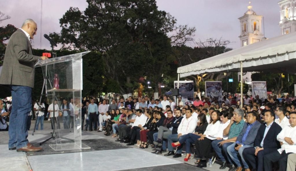En la plaza cívica “Primer Congreso de Anáhuac” fue que el diputado Ricardo Castillo rindió su primer informe legislativo, poco después de las 18:00 horas, con la presencia de autoridades estatales y municipales como invitados de honor.