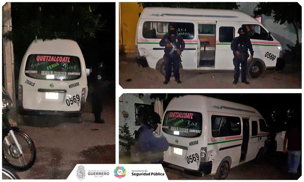 Elementos del Grupo Táctico de Reacción Inmediata “Centauro” recuperaron el pasado 22 de noviembre en Iguala, un vehículo del transporte público con las siguientes características: marca Nissan, tipo Urban, color blanco con franjas amarillas y verdes, número económico 0569 y placas de circulación 3592FPN.