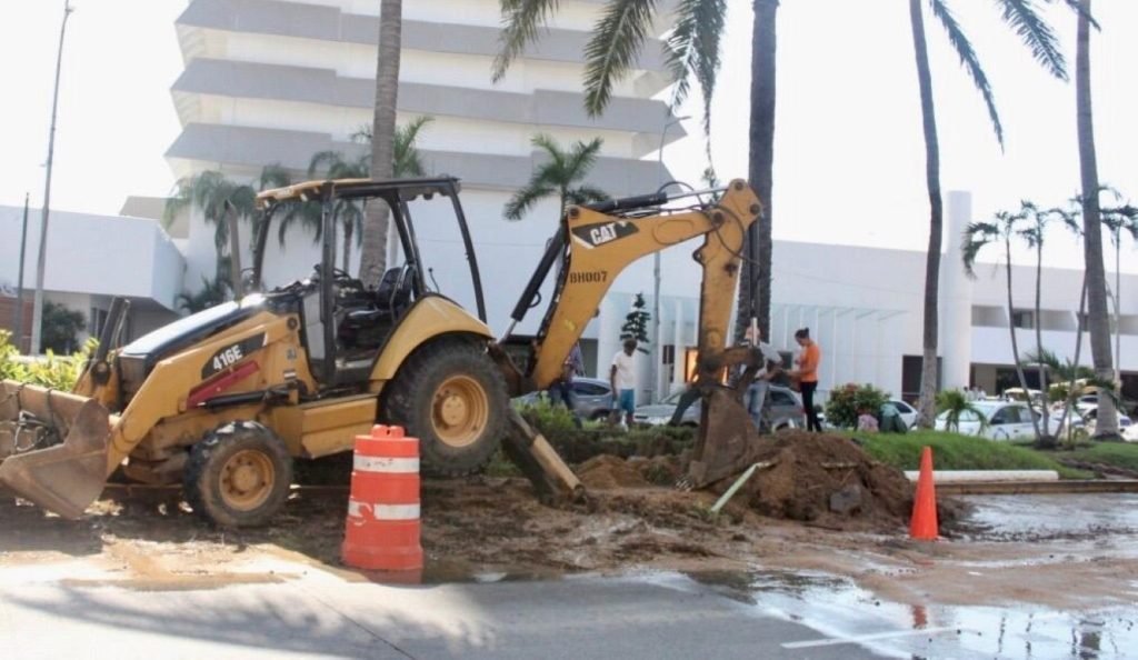 Los trabajos culminarán con la reposición del concreto que se retiró para reparar la fuga de agua potable en la banqueta del mercado de artesanías La Diana y el reacomodo de tierra en el camellón central de la Costera.