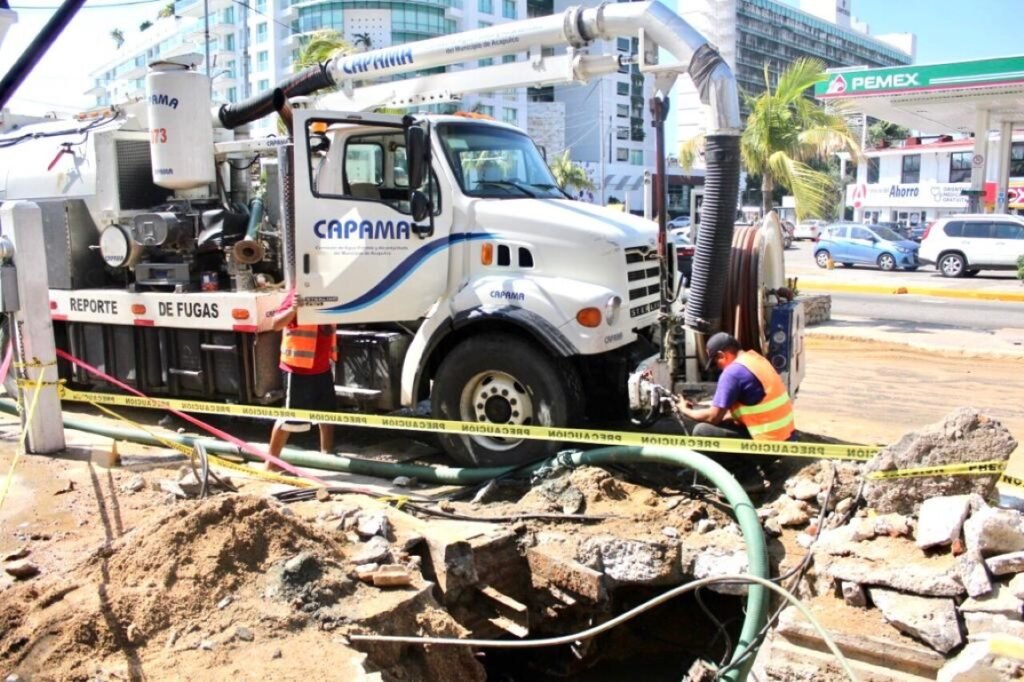 Las maniobras se ejecutaron en líneas de asbesto de 6 pulgadas que registran más de 30 años de vida útil, siendo la primera fuga atendida la que se ubicó en una de las banquetas del mercado de artesanías La Diana sobre avenida Farallón; la segunda reparación se llevó a cabo en el camellón central de la Costera Miguel Alemán casi frente al hotel Fiesta Americana.