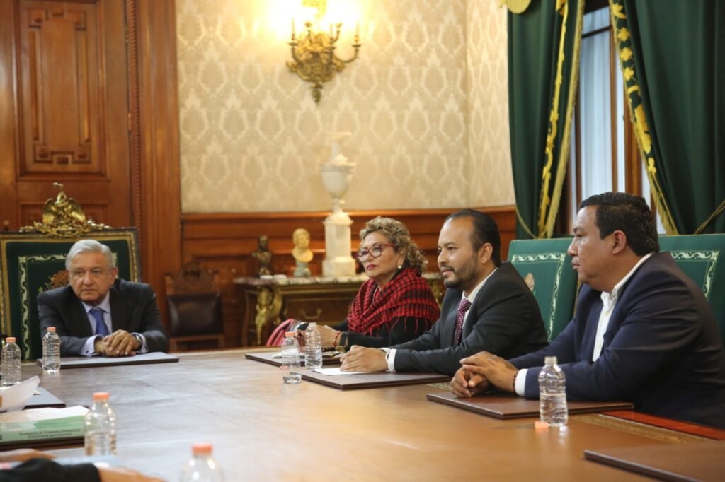 Con los nervios de punta nos encaminamos al lugar donde sería el encuentro con el presidente López Obrador, admirando la belleza arquitectónica del recinto histórico. Ya en el salón esperamos escasos tres minutos para que se apersonara la máxima autoridad de nuestro país. Entró por la puerta que conduce a su despacho. Llegó y saludó sonriente: “¡que tal presidenta!, ¿como le va?”, dijo, al mismo tiempo que abrazaba a la alcaldesa Adela Román Ocampo. Enseguida se dirigió a un servidor, para continuar con Juan Carlos Manrique y cruzar al siguiente extremo de la mesa donde se encontraban Jorge Luis Memije, Rodrigo Ramírez Justo, Benjamín Sandoval Melo, René Vargas Pineda y el luchador social, amigo personal de López Obrador, el profesor Eloy Cisneros Guillén.
