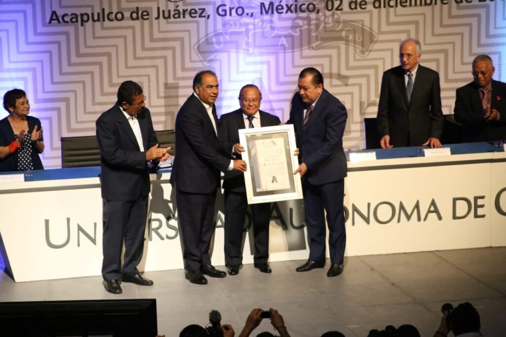 El gobernador también recibió un reconocimiento por el Honorable Consejo Universitario y de la Comunidad estudiantil de la UAGro, por su apoyo a la Máxima Casa de Estudios y por expansión de su oferta educativa al servicio del estado.