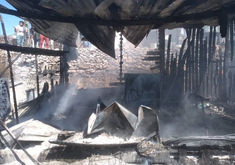 Reducida a cenizas quedó una humilde vivienda al ser consumida por el fuego originado por las brasas de un fogón improvisado que estaba dentro
