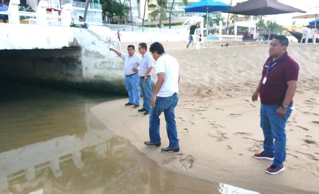 ACAPULCO. — El director general de la Capama, Leonel Galindo González, encabezó un recorrido de verificación en el canal pluvial que desemboca en plaza Canadá, constatando la ausencia de descargas residuales en la playa certificada Icacos II.