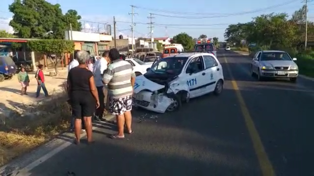 El choque se produjo a las 16:30 horas de este domingo, cuando el chofer del taxi 0171, un Chevrolet, Matiz, invadió el carril contrario para desviarse y por ello chocó en el costado izquierdo de una camioneta Chevrolet, de color azul, con placas del estado de Guerrero.