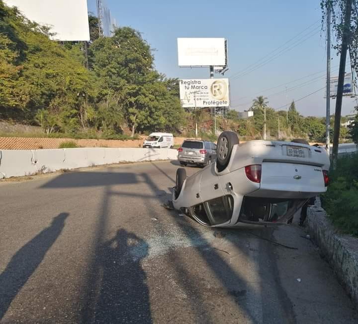 ACAPULCO. —Tras ser conducido a exceso de velocidad, un vehículo de la marca Chrevrolet, tipo Chevy Monza, de color blanco, volcó sobre la avenida escénica, en dirección hacia Puerto Marqués.