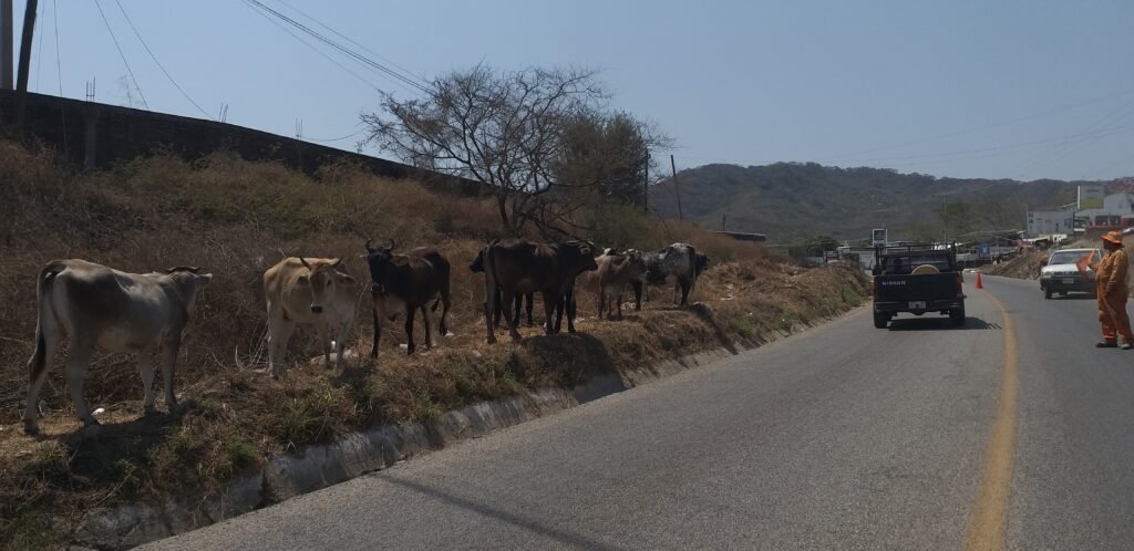 Los animales sueltos continúan caminando a un lado de la carretera federal Acapulco-Zihuatanejo, en el municipio de Tecpan de Galeana, lo que ha generado accidentes automovilísticos.