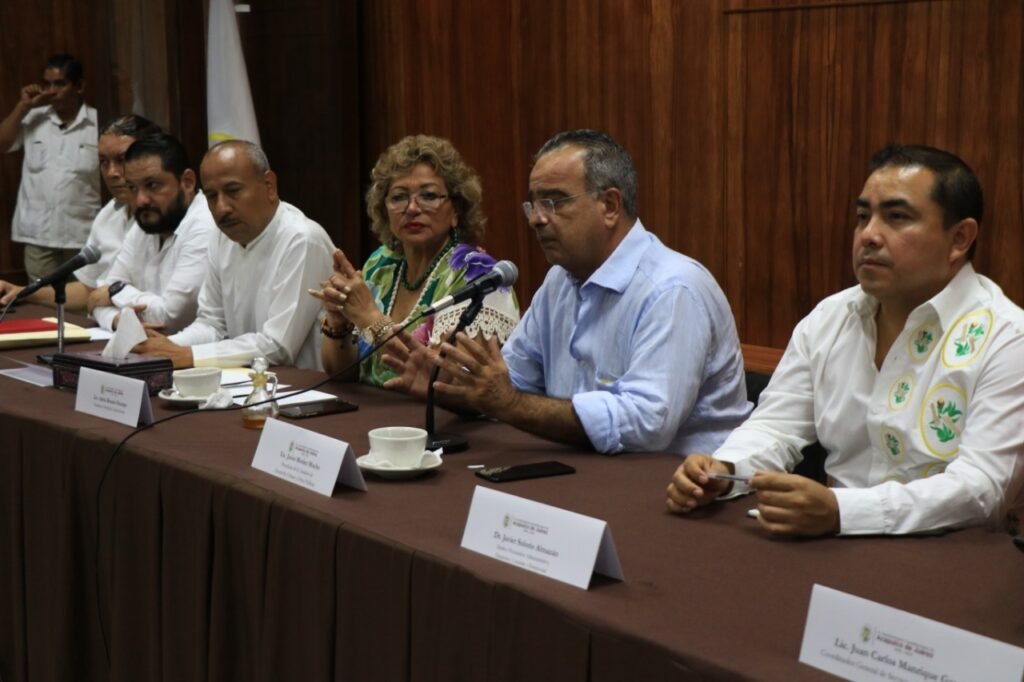 Al finalizar la conferencia de prensa, la presidenta escuchó las observaciones y propuestas de representantes de colegios y cámaras de Ingenieros y Arquitectos en Acapulco. Estuvieron presentes el regidor presidente de la Comisión de Desarrollo Urbano y Obras Públicas, Javier Morlet Macho; el síndico Administrativo, Javier Solorio Almazán; el secretario general, Ernesto Manzano Rodríguez; el coordinador de Servicios Públicos, Juan Carlos Manrique García y el director de Salud, Rafael Flores Jiménez.