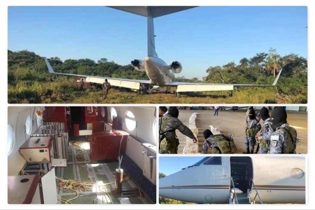 Tras el tiroteo y una vez que se rindieron los ocupantes del narcoavión, pues los que esperaban el valioso cargamento de droga emprendieron la huida, fueron asegurados 2 mil 572 kilos de cocaína valorados en más de 40 millones 407 mil 783 dólares, una camioneta pick-up, un Jeep, una cuatrimoto, un tractor, siete fusiles, una pistola, tres tolvas para pistola, 13 tolvas para fusil, cuatro radios portátiles, dos teléfonos celulares, una laptop y el jet.