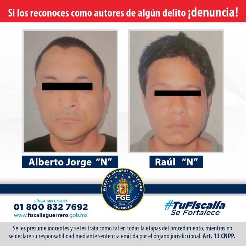 ACAPULCO. — La Fiscalía General del Estado logró sentencia condenatoria de 30 años de prisión y la reparación del daño a las víctimas en contra de Alberto Jorge “N” y Raúl “N”, por el delito de homicidio calificado.