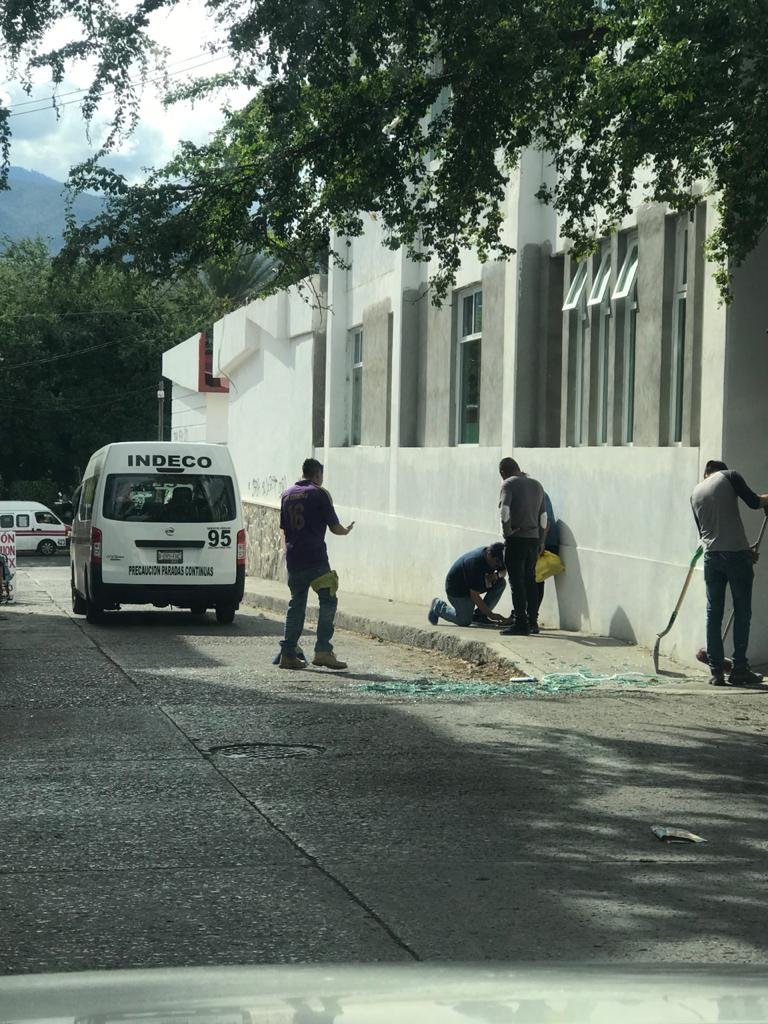 El vidrio era colocado por trabajadores en un edificio que es construido por la Secretaría de Salud, a la altura de las antiguas instalaciones del hospital general “Raymundo Abarca Alarcón”.