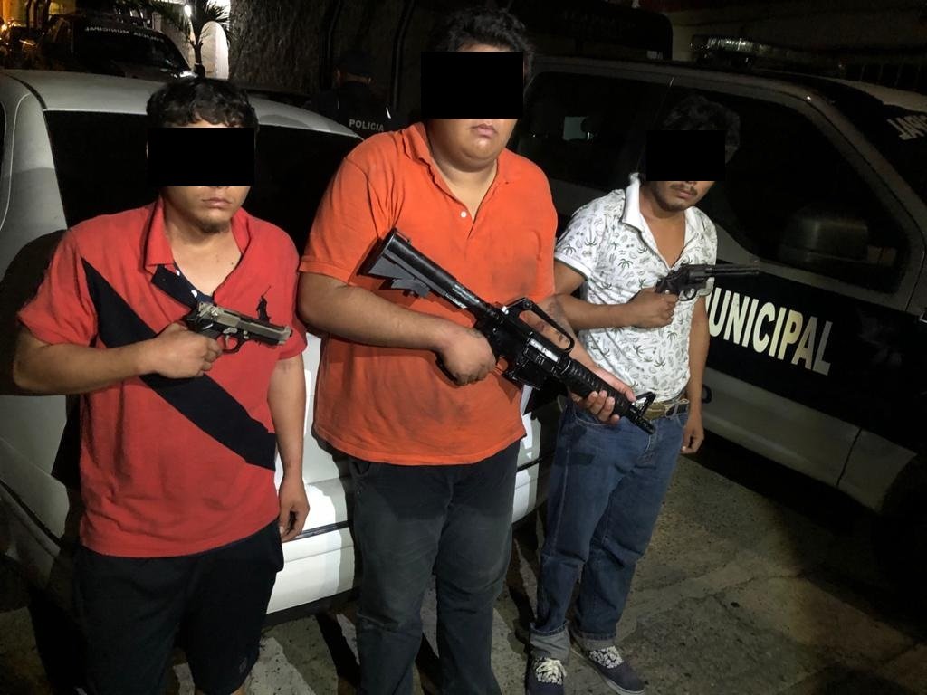 Elementos de la Policía Municipal de Acapulco aseguraron, en la Costera Miguel Alemán, a tres sujetos que minutos antes realizaron disparos con armas de fuego en el Barrio de la Candelaria.