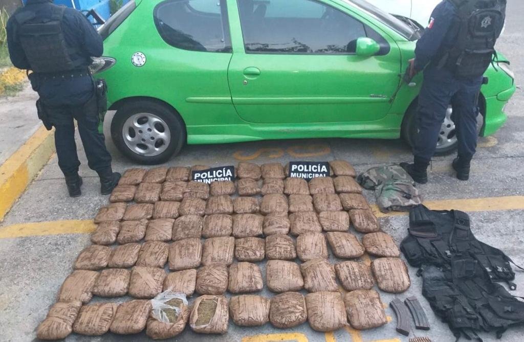 ACAPULCO.— Policías preventivos aseguraron un automóvil compacto Peugeot cargado de marihuana, cartuchos, chalecos tácticos y ropa tipo militar, que anduvieron persiguiendo durante casi una hora entre las localidades La Sabana y Las Plazuelas, en la zona rural del municipio, pero sus dos ocupantes lograron escapar.