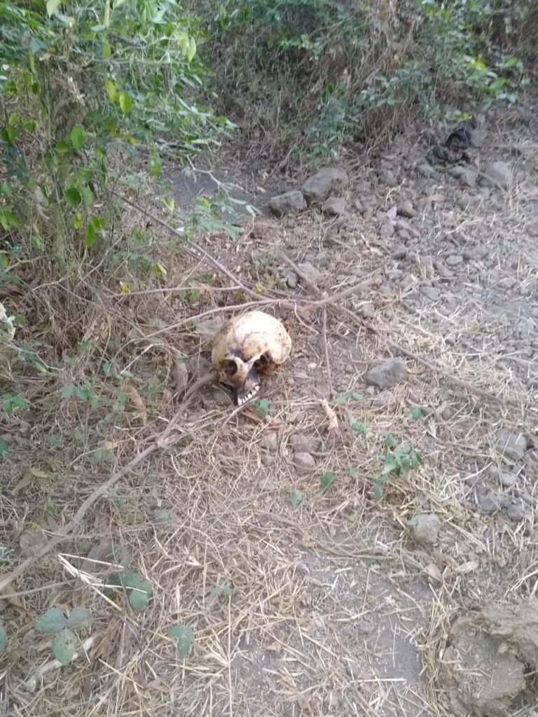 ACAPULCO. — Un cráneo y huesos humanos fueron localizados ayer en un terreno baldío a las orillas de la carretera del poblado de Las Plazuelas.