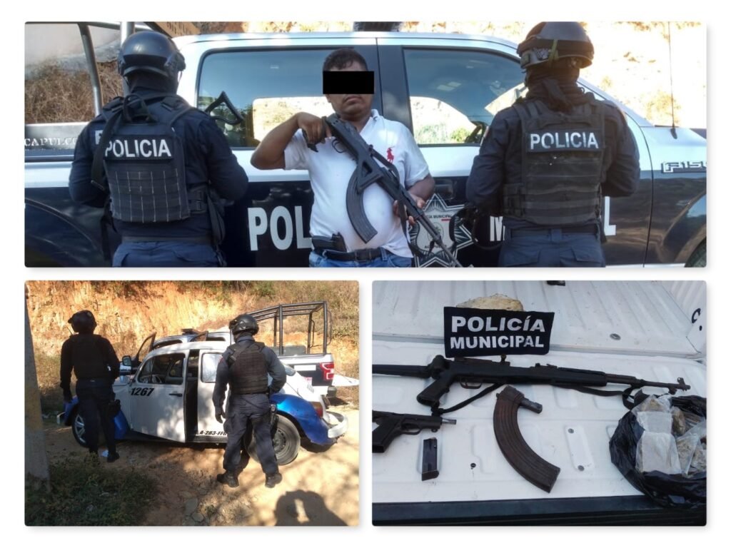 ACAPULCO. —Elementos de la Policía Municipal aseguraron a un sujeto en posesión de armas de fuego y probable droga en la calle Puesta del Sol de la colonia La Mira.