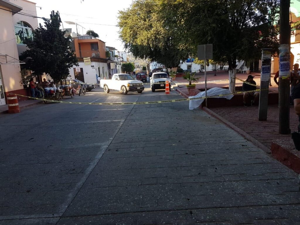 Un comerciante de la tercera edad murió ayer en el zócalo del Huitzuco, justo frente a Palacio Municipal.