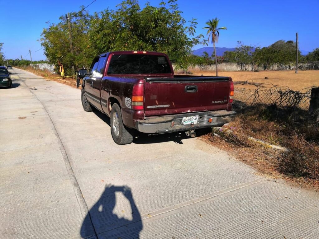 Los cadáveres de 4 personas, al parecer hombres, fueron localizados la mañana de este martes en el interior de esta camioneta, muy cerca de un módulo de la Policía Municipal en la barra de Coyuca de Benítez.