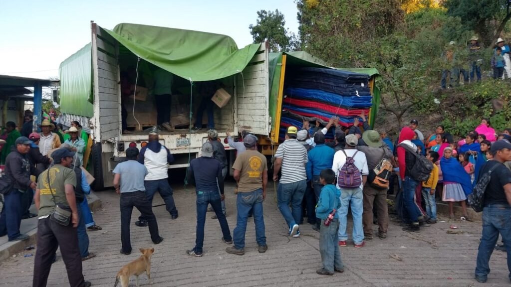 Los apoyos consistieron en 300 colchonetas y 2,240 despensas, mismos que fueron entregados a las autoridades comunitarias de la CRAC-PC, encabezadas por David Sánchez Luna.