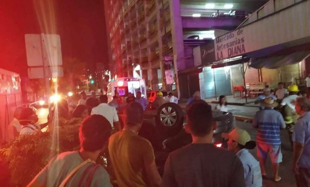 ACAPULCO.- Una pareja resultó lesionada cuando volcó el automóvil en el que viajaba la madrugada de este sábado sobre la avenida Costera del puerto, a un costado de la glorieta de La Diana.