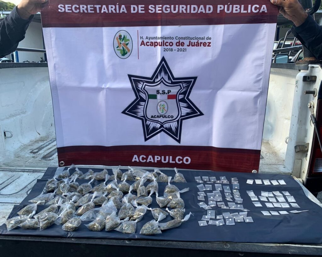 Acapulco.— Durante un recorrido de prevención del delito realizado en la Costera Miguel Alemán y a la altura de la playa Las Hamacas, elementos de la Policía Municipal encontraron diferentes tipos de droga al interior de una caja que se localizaba junto a una lancha.