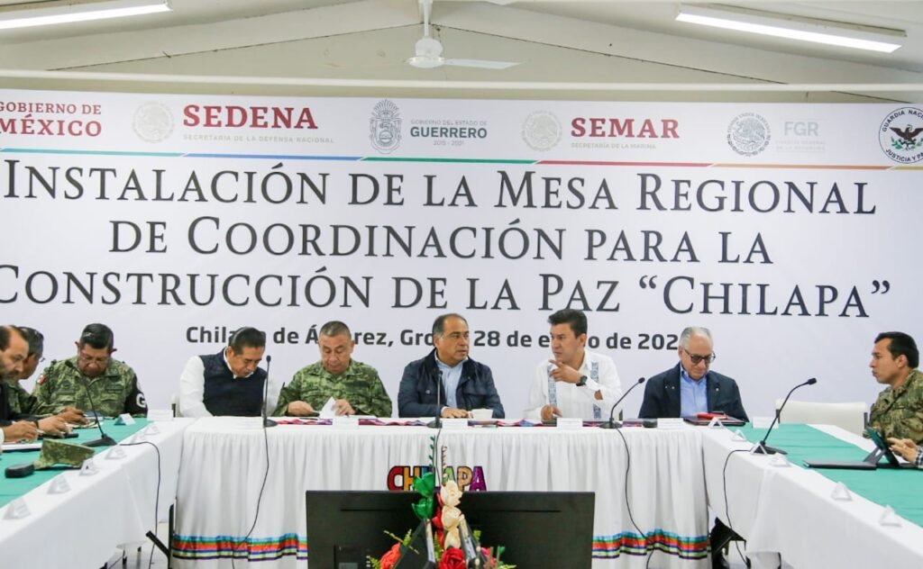 En su intervención, Jesús Valencia Guzmán informó que quienes asistirán a sesionar todos los días a esta Mesa Regional son el comandante de la Zona Militar que designe la Sedena, comandante de la Zona Naval, si así se decide, el coordinador de la Guardia Nacional en Chilapa, el subdelegado regional de Programas para el Desarrollo, el representante del Centro Nacional de Inteligencia, el representante de la FGR, el representante del gobierno del estado.