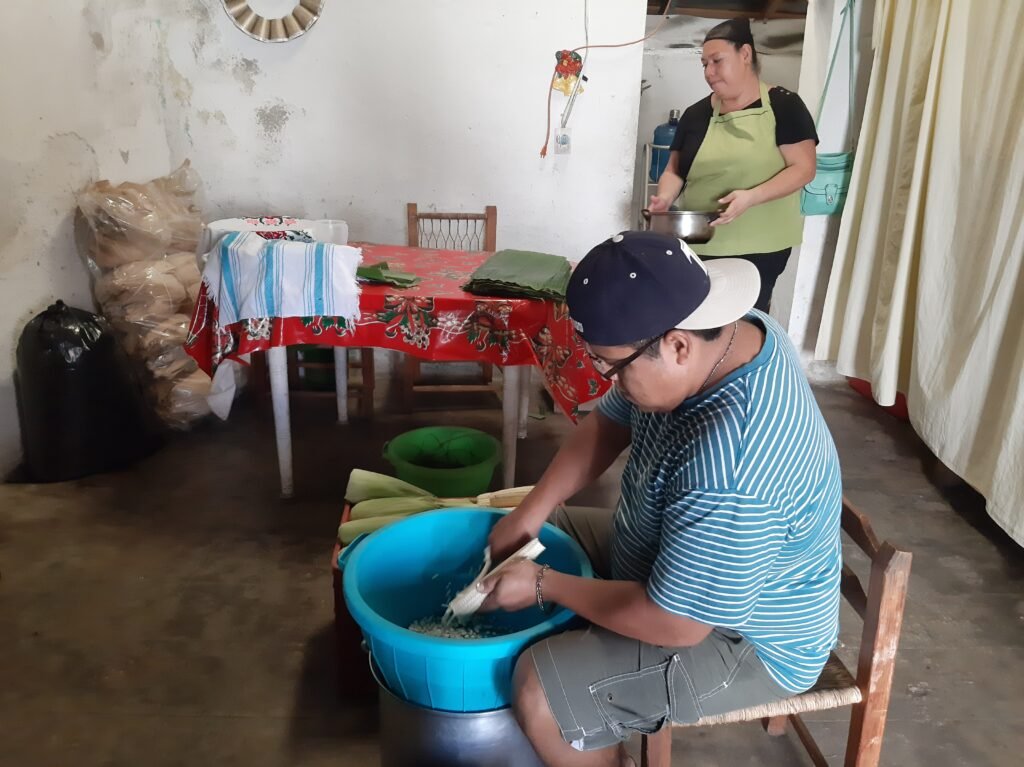 En su domicilio, en el centro de la ciudad, es donde llevan a cabo este trabajo que les da para el sostén de su familia. Dijeron que con anticipación consiguieron todos los ingredientes para hacer los tamales que más les pide; en este caso los de carne de puerco y de pollo, sin faltar los de rajas, verde o rojos; aunque también añadieron que tienen mucha demanda los tamales de elotes tiernos, principalmente para comerlos como postre.
