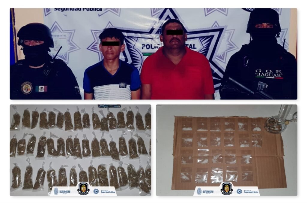 Elementos del Grupo de Operaciones Especiales “Jaguar” y de la Policía Estatal detuvieron a 2 hombres en posesión de droga y una motocicleta, la cabecera municipal de Petatlán.