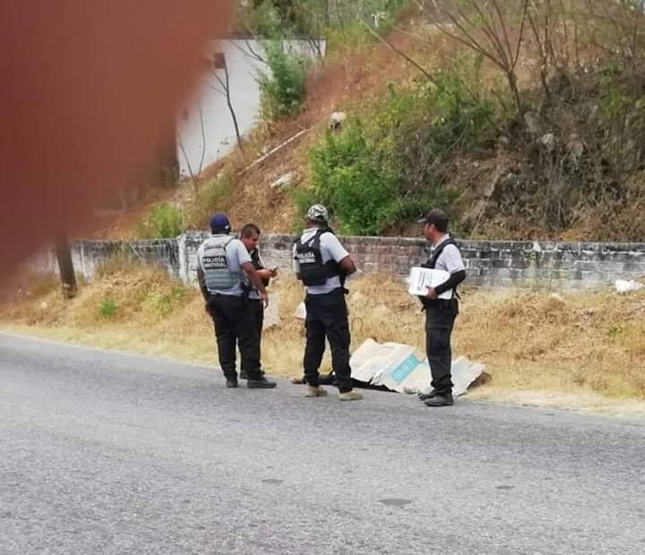 Elementos de la Policía Ministerial y Estatal llegaron al lugar y encontraron el cadáver de un sujeto, de unos 35 años de edad, el cual tenía una mochila en su espalda y presentaba varios impactos de bala.