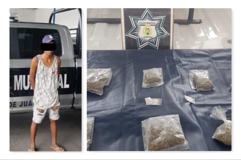 ACAPULCO. — Durante un recorrido de seguridad y vigilancia realizado por la carretera federal Acapulco – Zihuatanejo, elementos de la Policía Municipal capturaron a un sujeto en posesión de probable droga, quien se encontraba en la parada de camiones, en el punto conocido como La Parota, por la entrada de El Pedregoso.