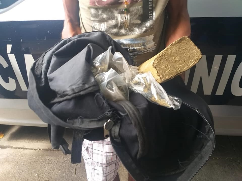 Una vez asegurado, se le solicitó una inspección a quien dijo responder al nombre de Armando “N”, quien al mostrar el contenido de una mochila que traía, sacó 26 bolsas con marihuana, 08 envoltorios de papel periódico y 01 paquete envuelto con cinta canela.