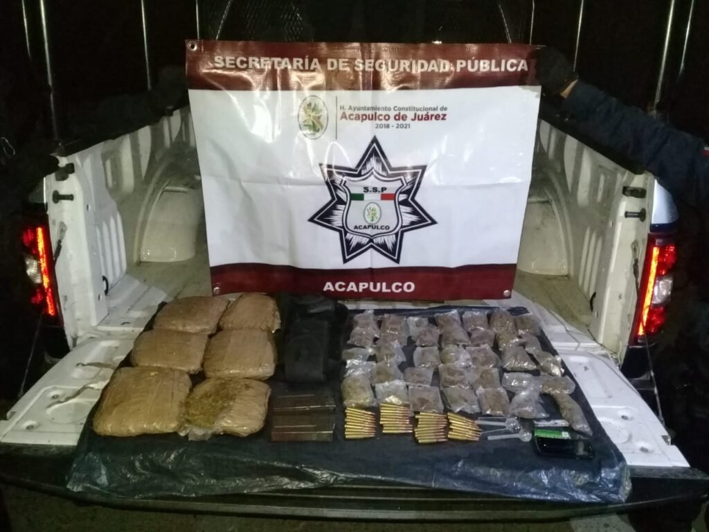 ACAPULCO. —Elementos de la Secretaría de Seguridad Pública aseguraron una bolsa con droga y dos cargadores abastecidos con 38 cartuchos útiles, en la calle de El Tanque de la colonia Cumbres de Figueroa.
