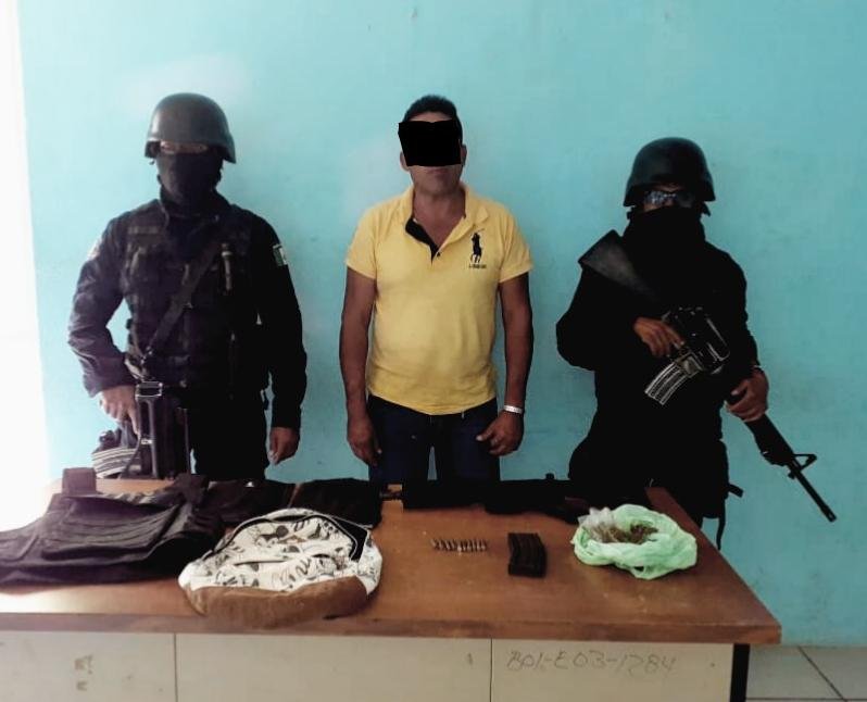 Se trató de Fernando “N” de 46 años de edad, quien portaba el “cuerno de chivo” y los 50 gramos de marihuana.