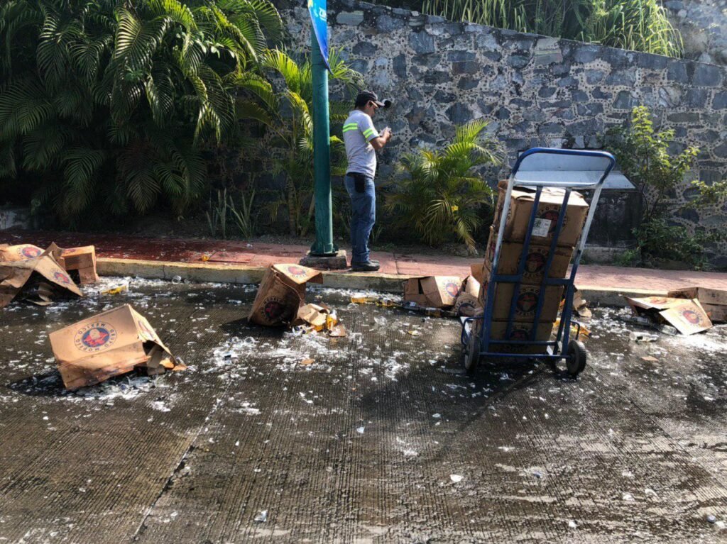Alrededor de 20 cartones de cerveza se salieron de un camión de la “Corona”.