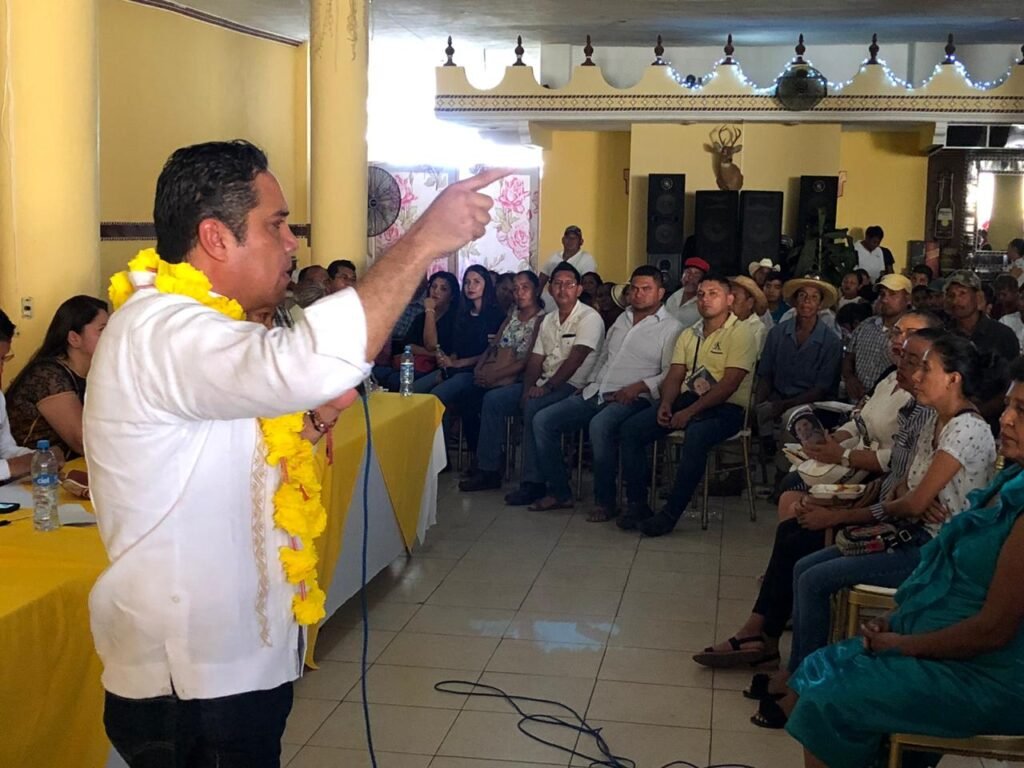 Horas más tarde, a las 4 de la tarde, comenzó la reunión programada en San Marcos, donde Velázquez Aguirre fue recibido por el alcalde Tomás Hernández Palma y cerca de 500 líderes ciudadanos.