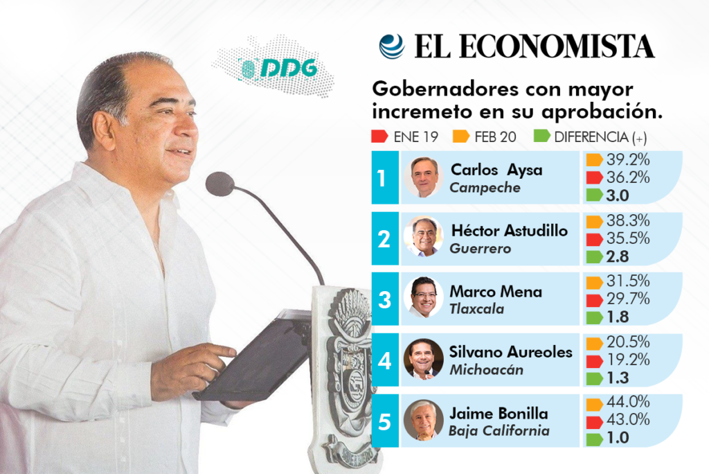 El Ranking Mitofsky Gobernadores y Gobernadoras de México refleja además que 21 de los 32 mandatarios estatales tuvieron una disminución en febrero del 2020 en su popularidad, comparado con el mes anterior.