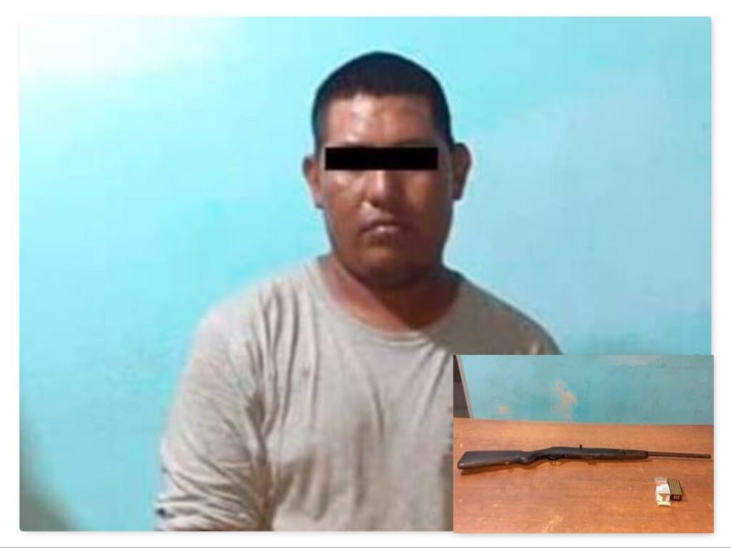 Fue por esto que la Policía Estatal se trasladó al lugar en donde detuvieron a quien dijo llamarse Efraín “N” de 28 años de edad, mismo que portaba un arma de fuego calibre 22 milímetros y una caja con 50 cartuchos útiles del mismo calibre.
