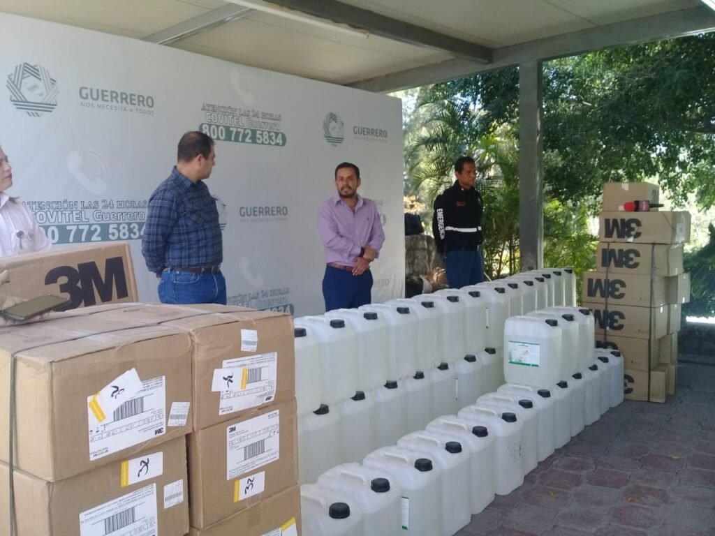 CHILPANCINGO.- Con la finalidad de contribuir a las acciones que realiza el gobernador Héctor Astudillo Flores para contener y prevenir los contagios por el coronvirus en el estado de Guerrero, el gerente general de la empresa minera Media Luna, Faysal Rodríguez Valenzuela, hizo entrega a través de la Secretaría de Fomento Económico (Sefodeco) de 1000 litros de alcohol en gel y 3 mil 500 mascarillas, respirador contra particulas N95.