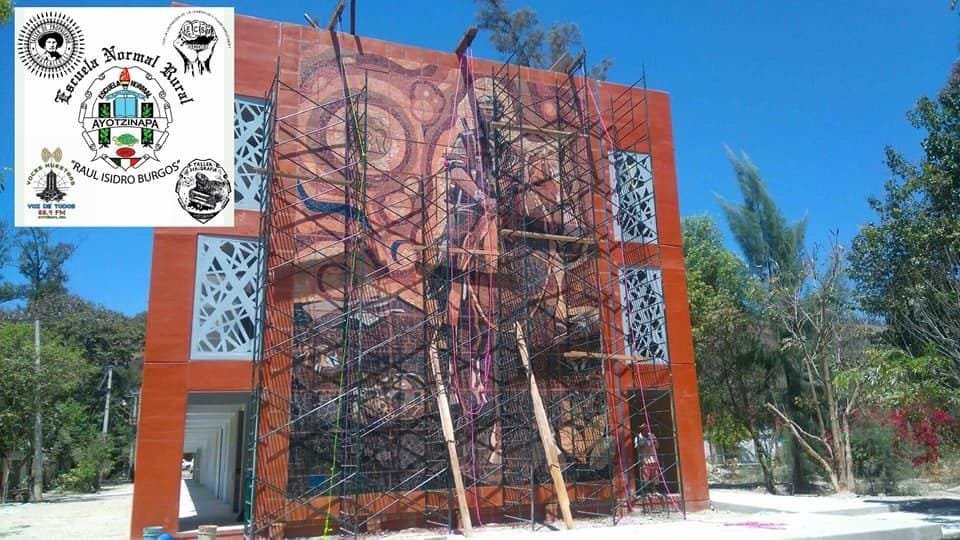Este fin de semana fue inaugurado un mural, de unos 25 metros de largo por unos 15 metros de ancho, en uno de los edificios que está en reconstrucción dentro de la Normal Rural de Ayotzinapa, que está dedicado al subcomandante Marcos del Ejército Zapatista de Liberación Nacional (EZLN).