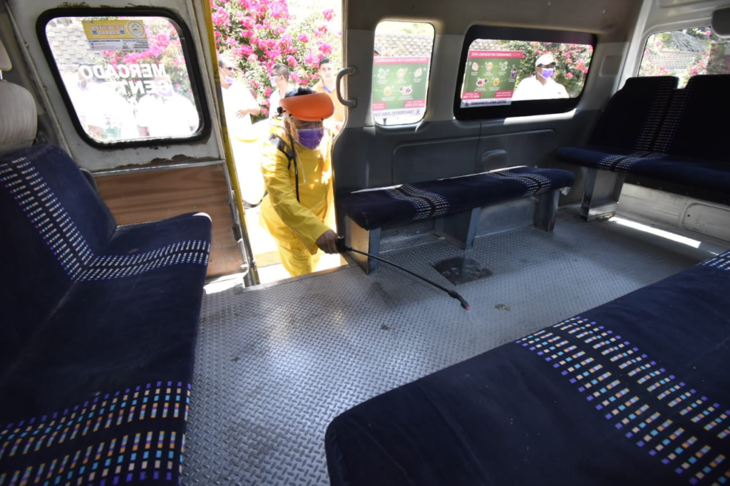 Mario Catalán, delegado de Transporte y Vialidad de la zona, informó que es la segunda semana que se ha realizado la limpieza de unidades con agua y cloro, como medida preventiva contra el COVID-19, así mismo, la distribución de gel antibacterial.