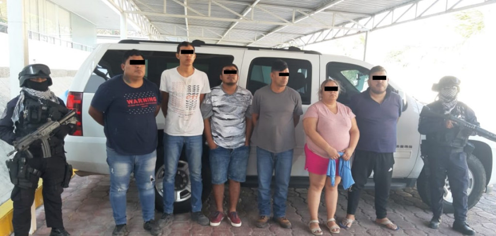 Las personas detenidas se identificaron como Andrés “N” de 42 años de edad, José Luis “N” de 33 años, Octavio “N” de 26 años, Nery Tomas “N” de 22 años, Gregorio “N” de 43 años, Silvia Esmeralda “N” de 40 años; también fue detenido un hombre de 15 años de edad.