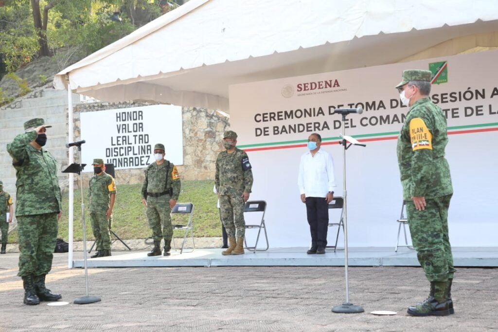 ACAPULCO. — El gobernador Héctor Astudillo Flores asistió a la Ceremonia de Toma de Posesión al Cargo y Protesta de Bandera de Miguel Hurtado Ochoa, quien a partir de este viernes se desempeña como nuevo comandante de la Novena Región Militar.