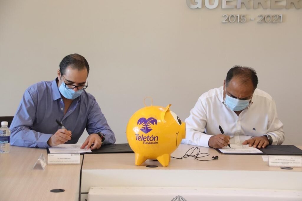 El gobernador Héctor Astudillo Flores y el director del Centro de Rehabilitación Infantil Teletón (CRIT), Paulo César Mercado Luna, firmaron un convenio de colaboración para convertir esas instalaciones ubicadas en Acapulco en un centro para atender a pacientes en pos recuperación de otras enfermedades diferentes a la del COVID-19.