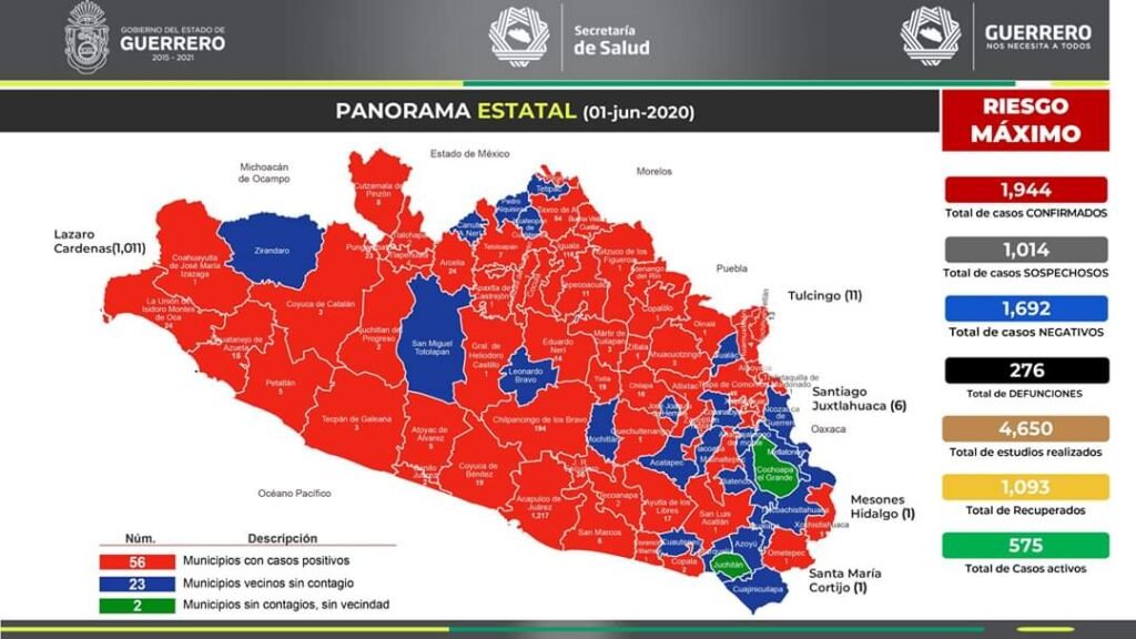 ACAPULCO.— Guerrero alcanzó este lunes los mil 951 casos confirmados de Covid-19 y 281 defunciones, de acuerdo con la actualización de datos de la Secretaría de Salud federal.