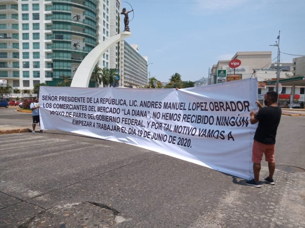 Los comerciantes pidieron ayuda al presidente Andrés Manuel López Obrador y que voltee a ver a Acapulco, ya que 500 familias que dependen de la actividad del mercado de La Diana se encuentran en una grave necesidad por falta de ingresos, por lo que esperan tener una respuesta o reabrirán el 19 de junio sus locales.