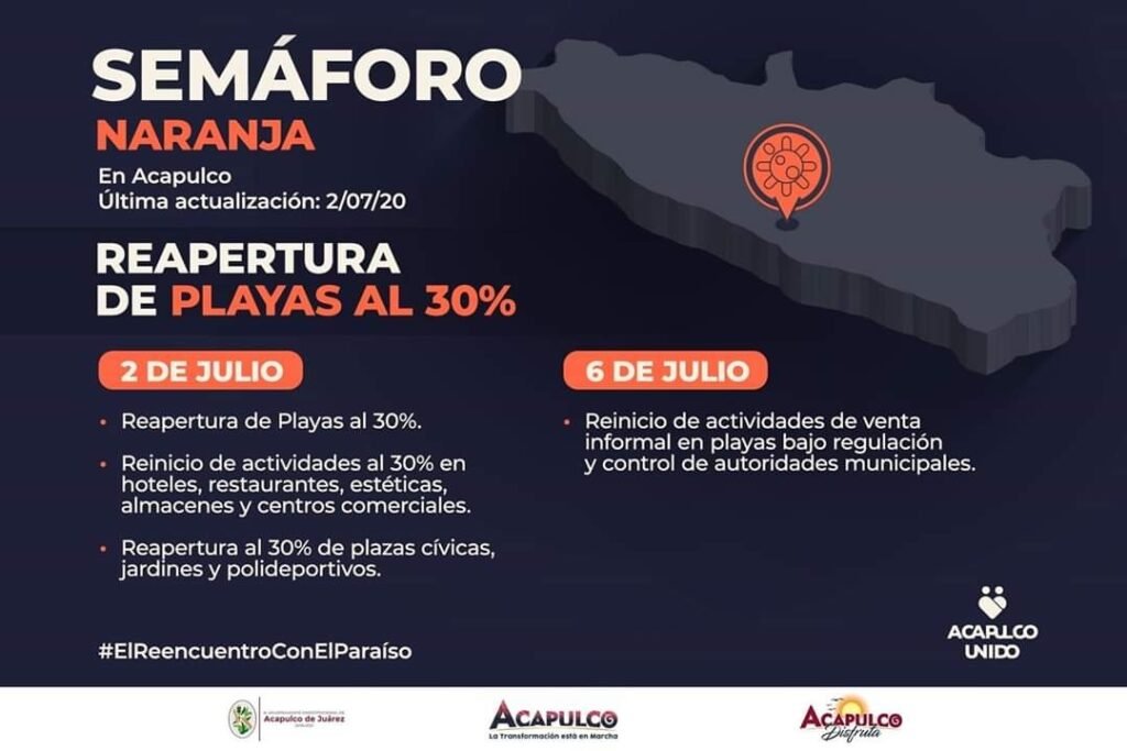 El Gobierno Municipal reitera el llamado a la población a seguir las recomendaciones sanitarias para que el próximo lunes Guerrero y Acapulco cambien del rojo a la fase naranja en el semáforo epidemiológico, y de manera paulatina, pero segura, el municipio entre a la “nueva normalidad”.