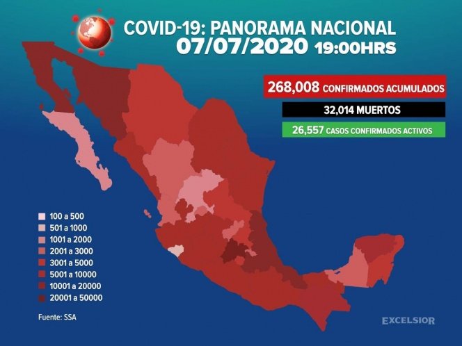 - *Ya suman 268 mil contagios, de los cuales 26 mil 557 son enfermos activos, porque presentaron síntomas en los últimos 14 días, mientras que los casos sospechosos aumentaron a 77 mil 703